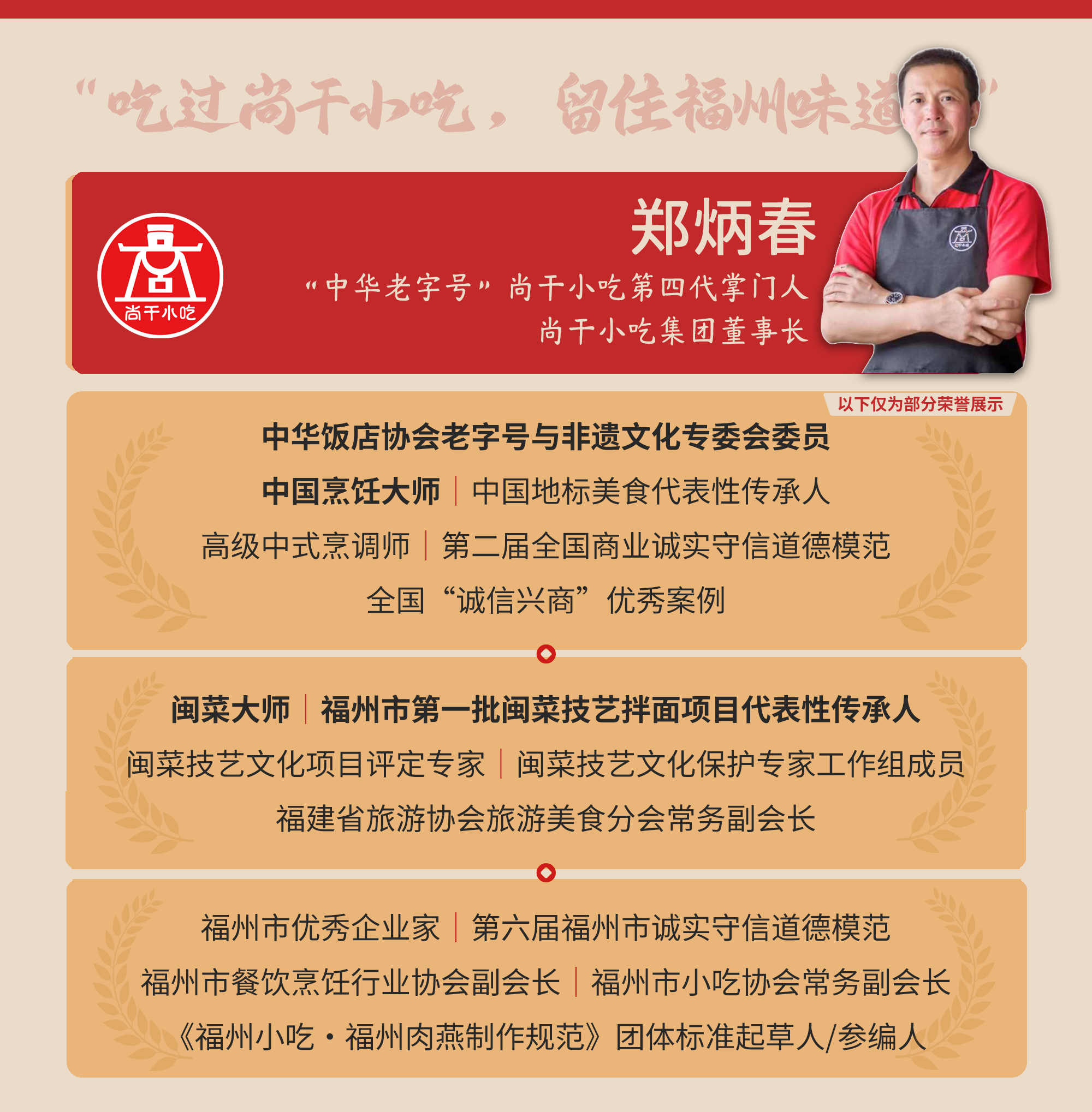 2012年,郑炳春成立福州尚干餐饮管理有限公司,采取“标准化工厂+连锁门店+电商平台”三位一体的经营模式,实现了传统小吃从家庭作坊向产业化发展转型。