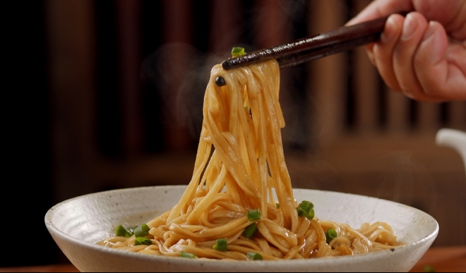 尚干小吃制作的拌面最令人称道的,莫过于那“不坨不烂”“挂酱弹牙”的绝妙口感,而这源于尚干小吃世代恪守的“鸭蛋清入面”古法工艺,也就是在面粉中加入鸭蛋清进行和面,犹如为面条披上一层隐形铠甲。