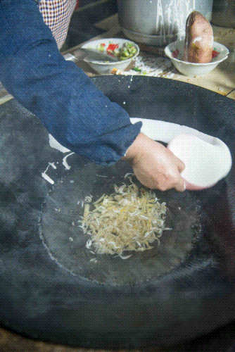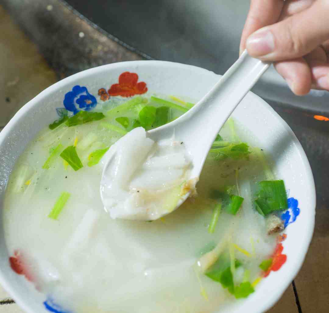 儿时总会攥着零钱守在煤炉前,看掌勺老师傅手持一瓢,内盛米浆,麻利儿地将瓢沿着滚烫的锅边缘淋一圈,乳白色的米浆遇热被烫成粉皮后,老师傅就会将粉皮铲入锅底,坠入汤中,丝滑如绸。