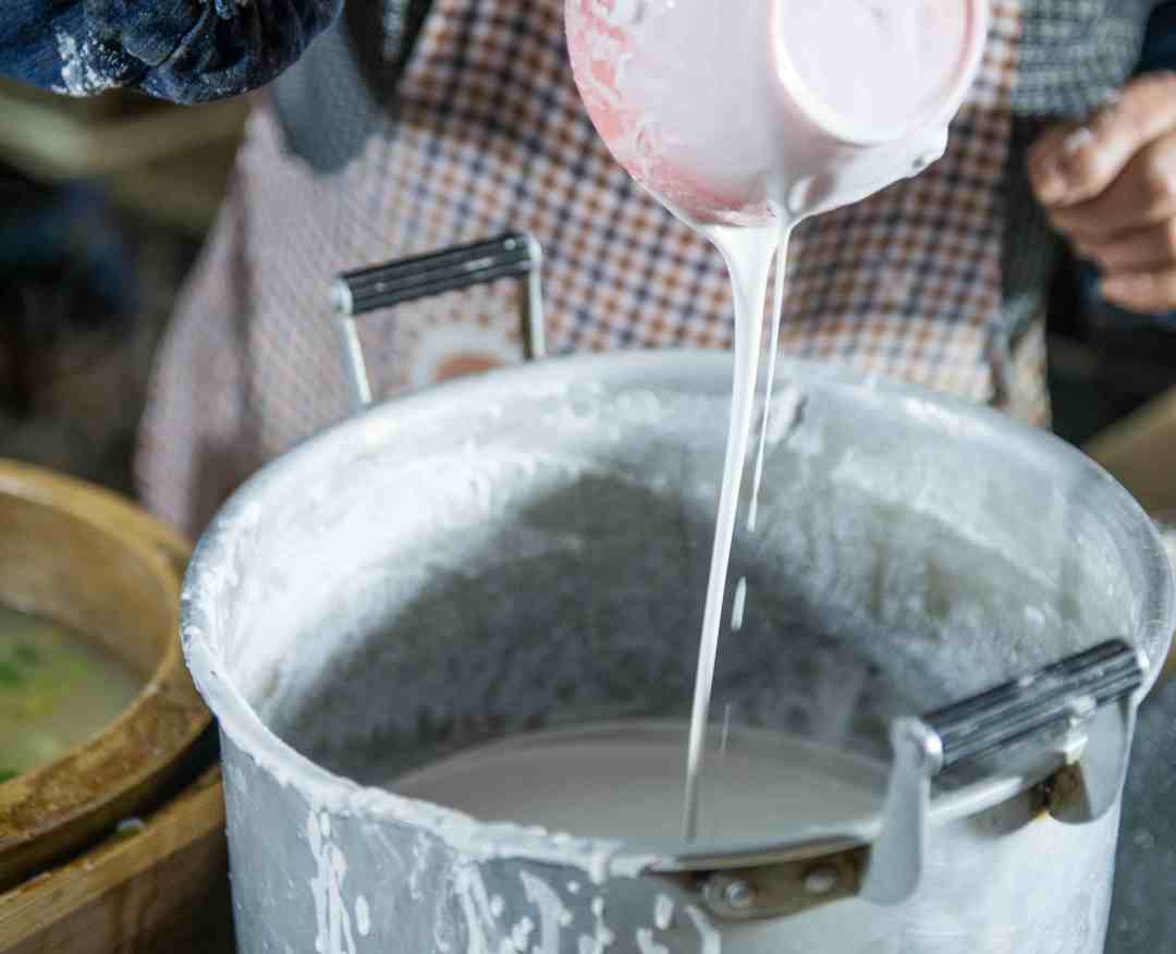 店家提前将米浸泡并磨成米浆